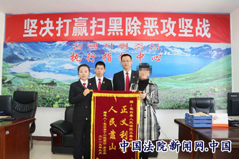 中国法院新闻讯(宫兆洲 邱彧 刘晨)“正义利剑,人民靠山”,当申请执行人唐某的女儿拿着印有这8个字的锦旗送给长白县人民法院执行局法官手里时,她的脸上露出了欣慰的笑容。