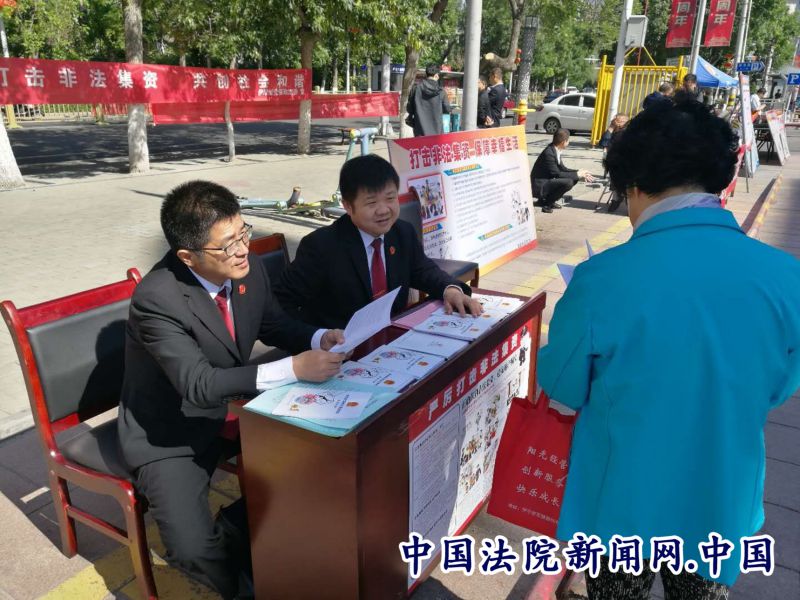 中国法院新闻讯(王喆)2019年5月15日,新疆维吾尔自治区高级人民法院伊犁哈萨克自治州分院法官,积极响应自治州金融办的号召,在伊宁市铜锣湾广场开展以“打击非法集资、保障幸福生活”为主题的防范非法集资法律宣传活动。