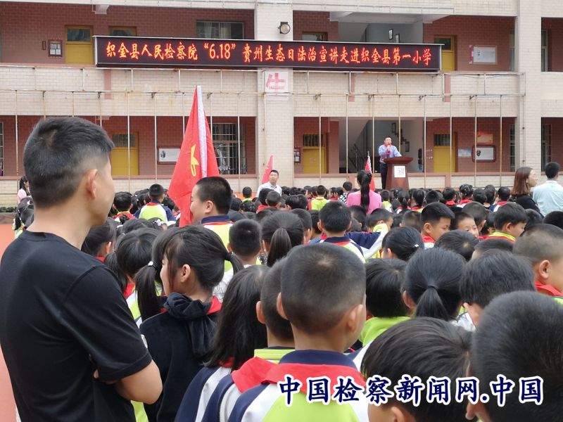 中国检察新闻讯(付立刚)为加强生态环境保护法治宣传,倡导树立生态文明理念。在6·18贵州生态日到来之际,贵州省织金县检察院组织10余名干警先后深入织金县九中、一小、五小、绮陌中小学、官寨中小学等8所学校开展以“保护碧水蓝天,共建绿色家园”为主题的生态环境保护法治宣传进校园活动。