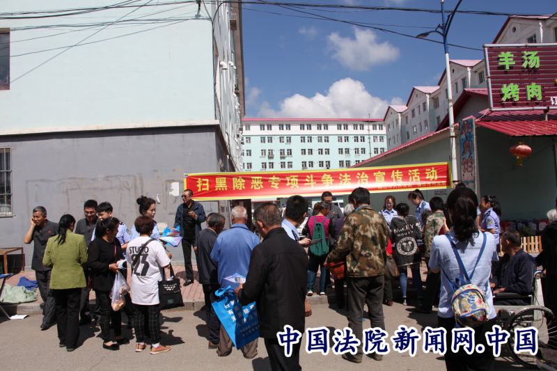 中国法院新闻讯(田旭)自“扫黑除恶”专项斗争工作开展以来,临江市人民法院先后走进学校、走进社区、走进农村,针对不同群体量体裁衣,开展多次法制宣讲、宣传活动,收到显著成效。近日,在临江市人民法院副院长于晓东的带领下,多名法官又深入到临江市桦树镇与临江市司法局联合开展“扫黑除恶”专项斗争知识普法宣传活动,再掀“扫黑除恶”专项斗争宣传新热潮,受到了广大群众的好评。
