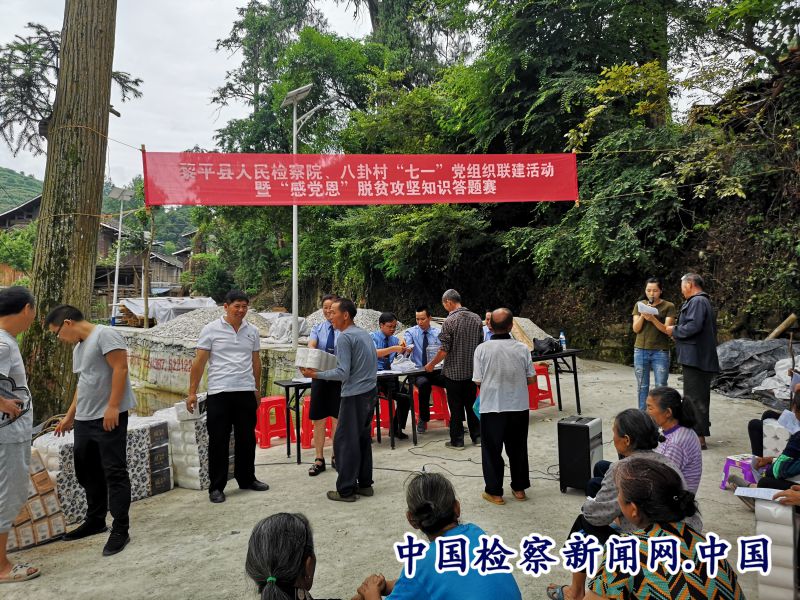 中国检察新闻讯(陈明清 黄传伟)6月27日,黎平县人民检察院党支部与上龙、八卦、樟溪3个脱贫攻坚帮扶村党支部,以“感党恩”脱贫攻坚政策知识答题赛、上党课、党员座谈会等形式,联合开展了迎“七一”党建联谊活动。