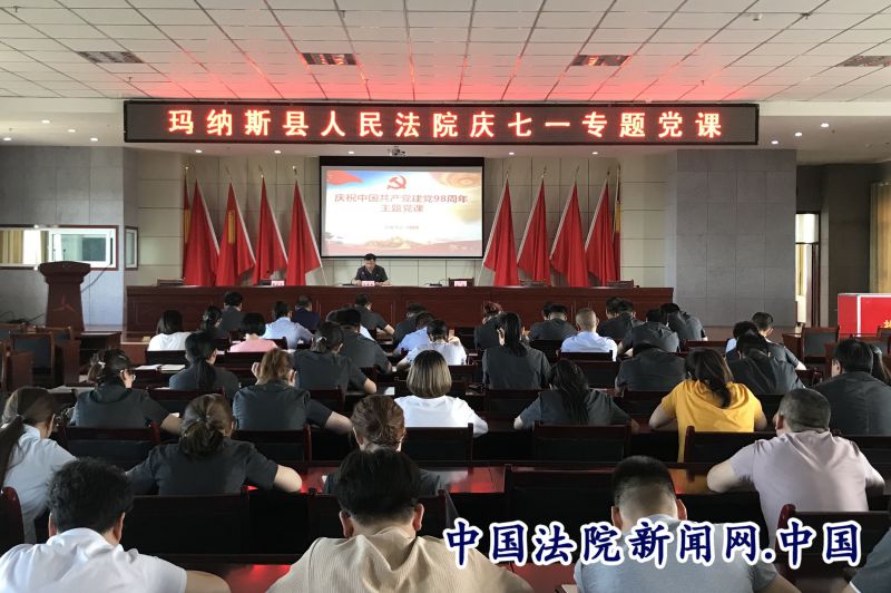中国法院新闻讯(谢军)6月28日,为纪念中国共产党建党98周年,玛纳斯县人民法院党组书记、副院长马国栋同志为全体干警上了一堂“不忘初心,牢记使命 努力做新时代人民满意的好法官”主题党课。