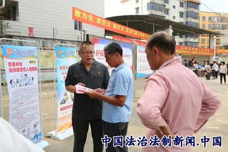 在开展以审判为中心、重拳打击黑恶势力犯罪的同时,博白县法院将审判执行工作与扫黑除恶宣传有机结合,充分利用送达、执行的间隙进行宣传,做到审判延伸到哪里,扫黑除恶宣传就开展到哪里。