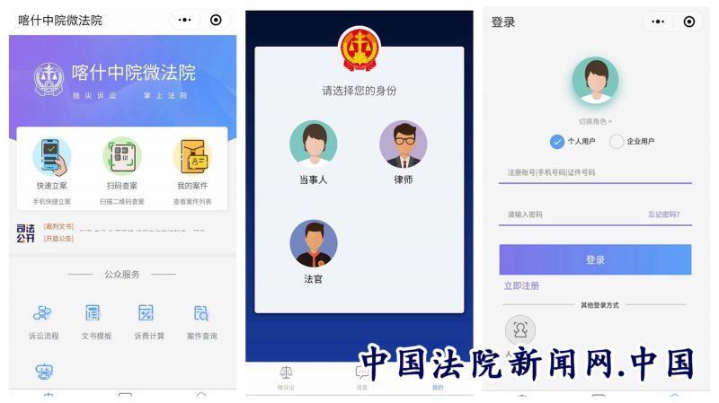 二是微信立案,关注“喀什地区中级人民法院”微信公众号,点击微信左下角“关注法院”,进入喀什中院微法院界面,点击“快速立案”选择身份注册完成即可按提示立案。