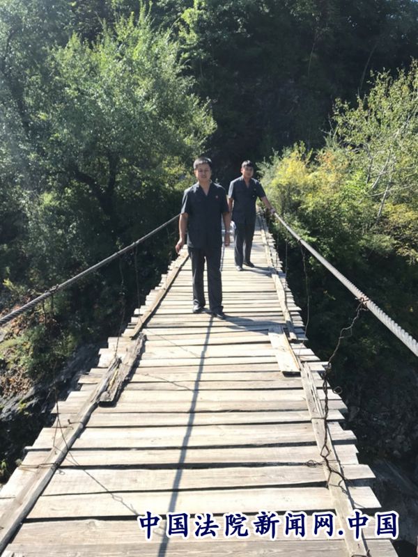 由于该村非常偏僻,通往那里的道路泥泞,崎岖不平,警车不能直接进入到村子里,只能停在离当事人家尚有一段距离的村头,剩余的道路法官们只好徒步并经过一座早已废弃的危桥,一道山梁后来到现场,法官们顾不上休息,立即进入到角色里,分别找原、被告展开调解。