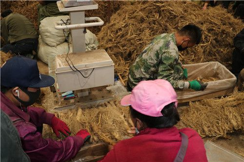 下午2:30长白县法院法官一行人在万良人参市场帮助被执行人在人参市场卖人参。