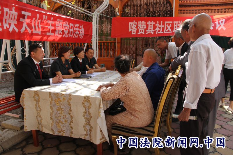 释法咨询解疑难。党日活动中,设置的法律咨询台,吸引了众多居民前来咨询。伊犁州分院的法官们现场为群众开展法治宣传,就群众提出的房屋租赁、二手车买卖、个体经营等生活中遇到的法律问题,一一进行了详细细致的解答,得到了居民的一致好评。居民塔西买买提•努热说:“今天这个活动搞得好,我买二手车的时候发生了纠纷,正发愁该怎么办,现在清楚了。非常感谢法院的干部。”