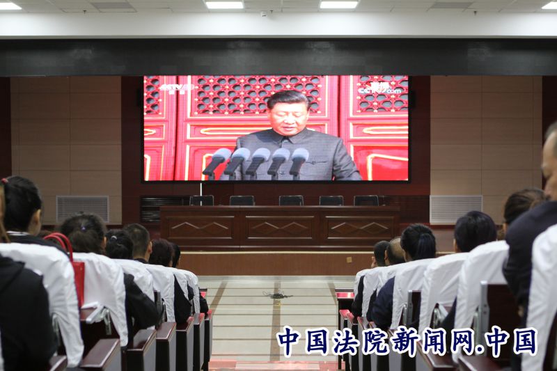 中国法院新闻讯(蔡冬梅 扁若飞)10月1日,庆祝中华人民共和国成立70周年阅兵仪式在北京隆重举行。上午,阜康市人民法院组织全体干警在本院九号大法庭集体收听收看习近平总书记重要讲话和阅兵仪式直播,共同感受这振奋人心的时刻。
