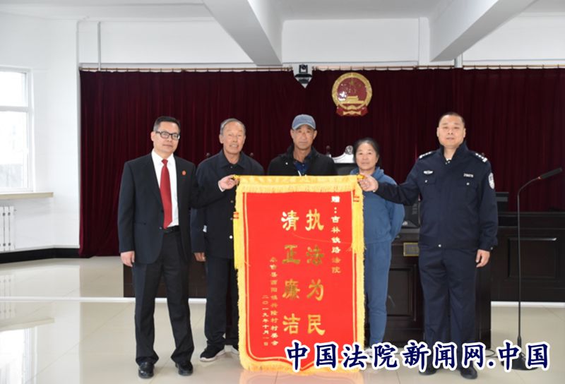 中国法院新闻讯 日前,吉林铁路运输法院迎来了几位可爱的人,他们脸上洋溢着灿烂的笑容,将印有“执法为民,清正廉洁”的锦旗交到办案人手中,激动地说道:“为了我们21个农户,你们来了村里三趟,都没吃我们一口饭,没喝我们一口水,今天我们特意送上锦旗,这是我们大家的心意!”