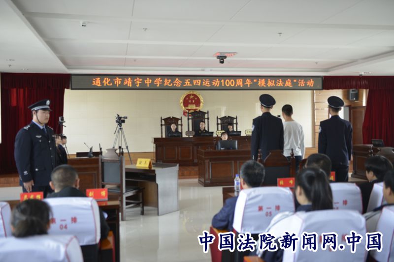 2019年是“五四运动”一百周年。为纪念“五四运动”,通化市中级法院联合全市多家单位共同举办的“模拟法庭”活动。“模拟法庭”现场设在通化市东昌区人民法院,青年法官志愿者协会的陈川鹏法官为这场模拟法庭编写庭审脚本。来自靖宇中学的15名学生饰演了模拟法庭的法官、检察官、律师、被告人、司法警察等全部角色,全体成员均着正装,以具体的校园欺凌案例为蓝本,极大地还原了真实的法庭庭审现场。