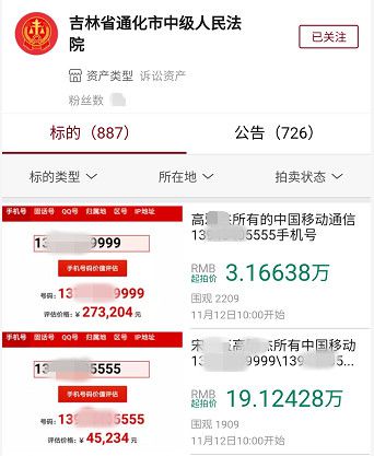 中国法院新闻讯(李洪利)近日,吉林省通化市中级人民法院首次对被执行人所使用的手机号码进行公开拍卖,定于11月12日10时开始拍卖。