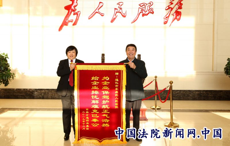 12月20日一早,大雪初晴,寒风刺骨,吉林万通药业集团药品经销有限公司(以下简称万通药业)董事长潘首德一行人来到东昌区法院将写有“为企业保驾护航正气浩然,给企业排忧解难克己奉公”“清正廉洁,公正执法”的锦旗分别送给东昌区法院和东昌区法院执行局。一时间,东昌区法院充满了热情的笑声。