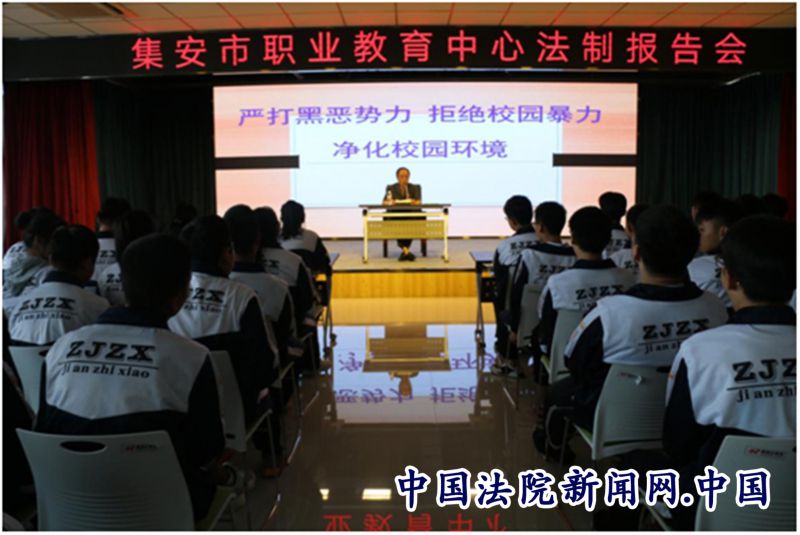 集安法院关工委负责人张凤林在集安职业教育中心上法制教育课
