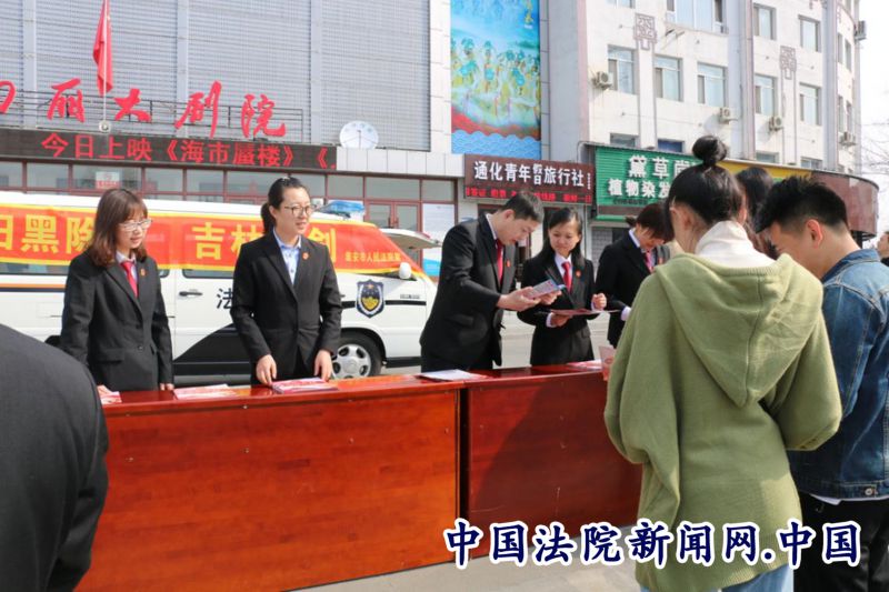 集安市人民法院先后在清河镇大集、影剧院、火车站和市区公园广场多次开展以“扫黑除恶、吉林亮剑”为主题的普法宣传活动。法院干警们通过悬挂横幅标语、法律图板展示、现场咨询、发放宣传资料等形式,向群众普及法律知识。活动共计发放宣传资料3400余份,解答群众咨询57次。扫黑除恶专项斗争是当前的一项重要政治任务,集安法院通过广泛宣传“扫黑除恶”专项斗争的重大意义,不断扩大“扫黑除恶”专项斗争的知晓率,增强全民参与的自觉性、积极性,为进一步深入开展“扫黑除”恶专项斗争打下了坚实基础。