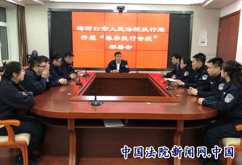 中国法院新闻讯 1月8日,按照吉林省高级人民法院关于在全省法院开展为期两个月的“春季执行会战”专项行动的通知要求,梅河口市人民法院高度重视,执行局长李玉泽主持召开会议,对专项执行行动进行总体部署。