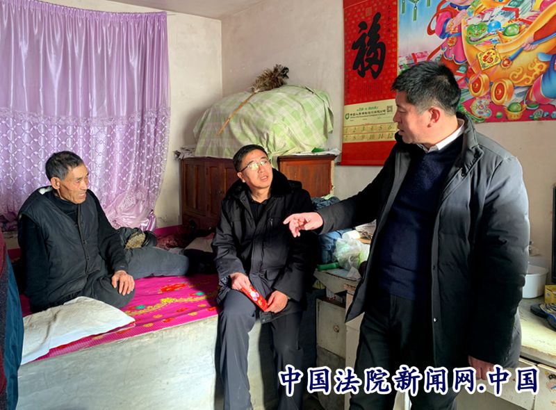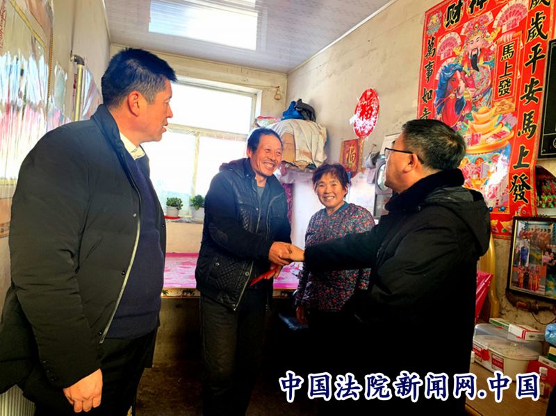 中国法院新闻讯(乔元兀)“大冷天的又给法院添麻烦了……”贫困户韩吉荣握着前来慰问的法院院长激动地说。这是1月10日当天,吉林省抚松县人民法院党组书记、院长罗兴国,常务副院长宋永辉、党组成员、法院扶贫包片领导韩宝国,办公室主任张生及驻村第一书记宋振国一行分深入抽水乡抽水村、参兴村对建档立卡贫困户开展春节慰问时的情景。抽水乡党委书记李业军、乡长鲍洪君等乡领导一同陪同走访。
