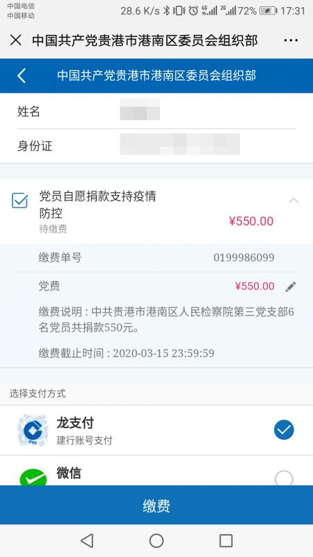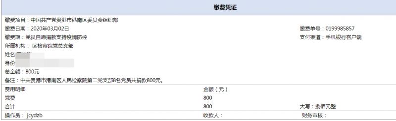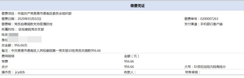 广西贵港市港南区检察院党员干警为疫情防控踊跃捐款