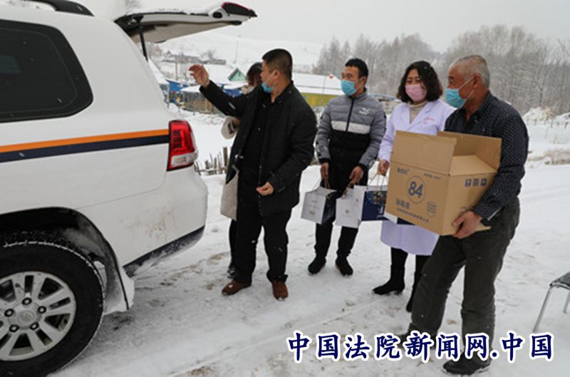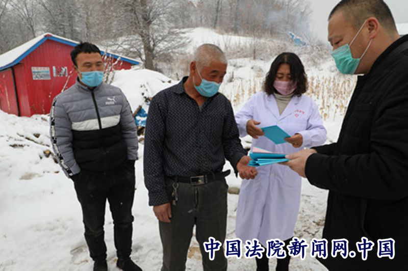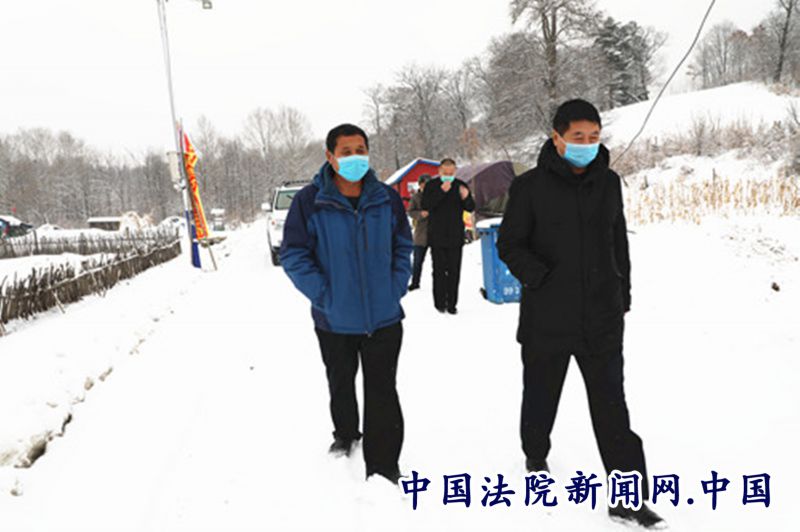 中国法院新闻讯(乔元兀)3月4日,下了一夜的绵绵春雪将北国大地装扮的分外妖娆。同昨天一样,吉林省抚松县人民法院扶贫包保驻村干部韩宝国和宋振国一早装载着消毒液、牛奶和法律宣传手册驱车20余公里直抵抽水乡参兴村,与乡村干部群众心连心、肩并肩,为战胜新冠疫情助力加油。