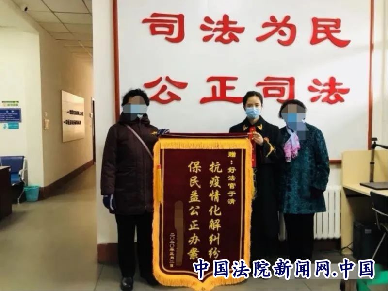 ——于法官,那天开庭,你为我们忙到一点多,都错过了吃饭的时间,我们真是特别的感激,我们原以为现在是疫情期间,我们的案子可能要延后,没想到这么快,真是太谢谢你了,现在我们的钱都得到了法律的保护,我们终于安心了。这面锦旗是我们的一点心意。