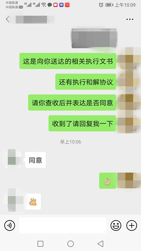 受疫情影响原告郭某无法亲临现场,执行法官为保障当事人健康安全,通过微信平台线上送达立案通知书、执行举证通知书等相关法律文书,向郭某说明被执行人高某的财产查询情况,并苦口婆心的对双方进行劝导。在征得双方同意后,执行法官利用微信对双方开展调解工作,仅用时10分钟,促使双方达成一致和解,被执行人高某签署执行和解协议书发给郭某,并承诺一定在约定时限内偿还欠款,本案以和解长期履行方式终结执行。
