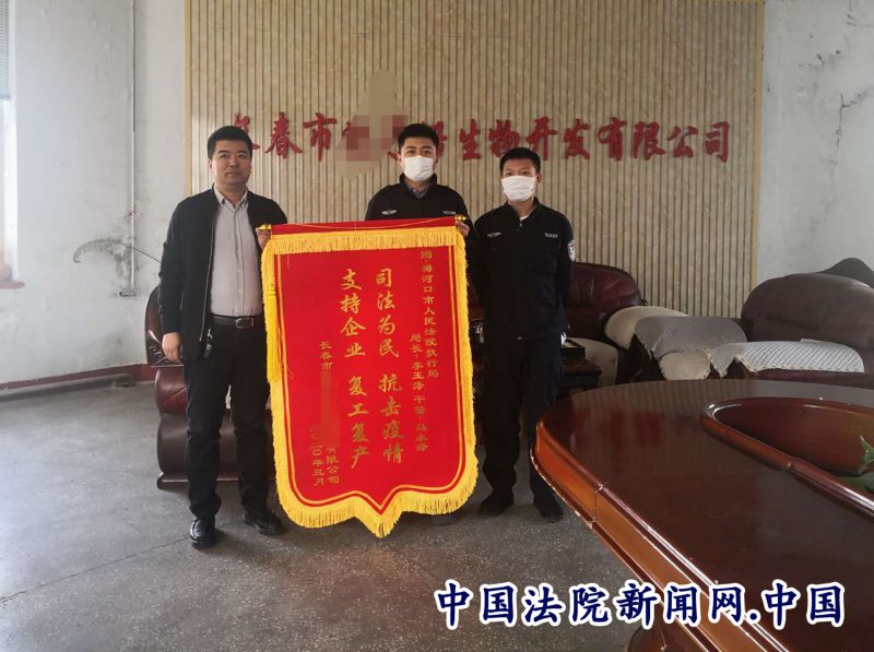 收到执行款后,申请人该企业负责人紧紧握住执行干警的手,激动地说:“感谢梅河口法院执行局,为我们企业讨回了公道,要回了货款,为我们企业的复工复产做出了很多。锦旗虽轻,情谊深重,你们真正做到了公正执法、执法为民”。