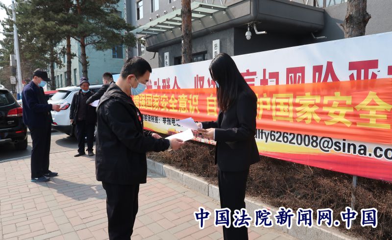 中国法院新闻讯(金薇)2020年4月15日,在第5个全民国家安全教育日到来之际,敦化林区基层法院开展以“坚持总体国家安全观,统筹传统安全和非传统安全,为决胜全面建成小康社会提供坚强保障”为主题的全民国家安全教育日宣传活动,进一步推动国家安全教育深入人心,增强全民国家安全意识。