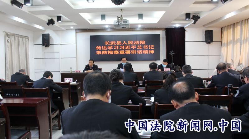 会议强调,全体干警要把学习贯彻习近平总书记来陕考察重要讲话重要指示精神作为当前和今后一个时期首要政治任务,要紧紧围绕各级法院党组和县委的工作部署,把全体干警思想和行动统一到习近平总书记重要讲话重要指示精神上来,努力实现让人民群众在每一个司法案件中都感受到公平正义的目标。