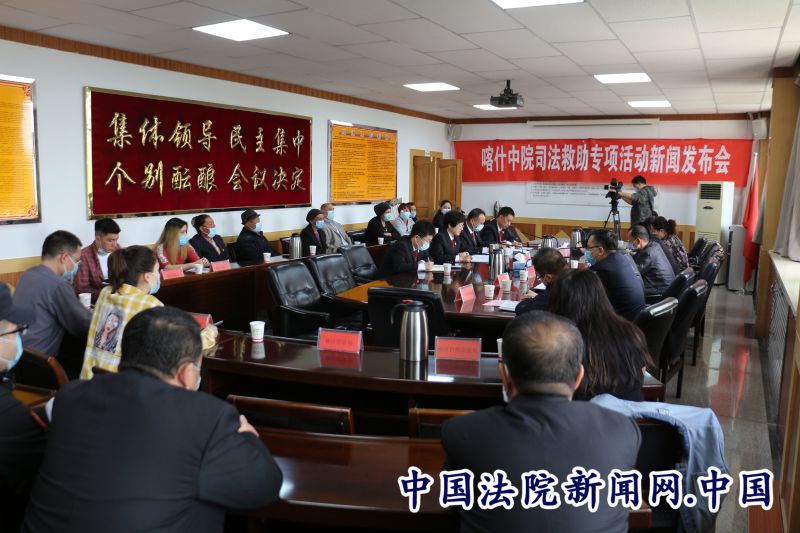 中国法院新闻讯(赵江霞)2020年4月28日,喀什地区中级人民法院召开司法救助专项活动新闻发布会,邀请了地委政法委、地委宣传部、新疆维吾尔自治区人民检察院喀什分院、公安局等十余个联动单位,喀什地区电视台、喀什日报社两个新闻媒体及律师代表、被救助人代表30余人参加此次新闻发布会。