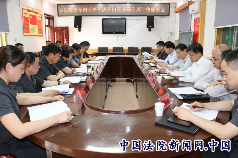 范思泓副院长听取扫黑除恶专项斗争工作汇报后,介绍了扫黑除恶专项斗争工作经验,逐一询问了涉黑涉恶案件审判进展情况。认为兴平法院扫黑除恶专项斗争基础扎实、配合紧密,审判工作准备充分,工作成效值得肯定。要求兴平法院加强协调联系,创新工作举措,克服新冠肺炎疫情影响,打开工作堵点,尽快安排涉黑涉恶案件开庭,如期完成涉黑涉恶案件审判任务。深化“打财断血”,深刻认识“打财断血”在扫黑除恶专项斗争中的重要性,积极提前介入,全面掌握黑财的来源去向,坚决做到应收尽收、应罚尽罚、应扣尽扣,彻底摧毁黑恶势力经济基础。主动参与社会治理,深入分析研究黑恶势力犯罪案件暴露出的管理漏洞,发挥司法建议书的作用,完善跟踪问效举措,推进“长效常治”机制建设。