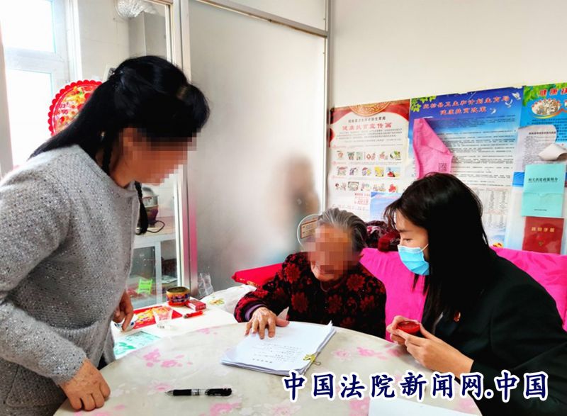 执行法官正在为老人办理执行相关法律手续。