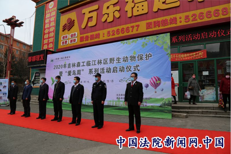 4月22日,临江林区基层法院联合执法队成员在临江市三公里万乐福广场举行了临江林区野生动物保护暨“爱鸟周”系列活动启动仪式,100余人参与启动仪式。活动从4月22日一直持续4月28日,期间还举办了鸟类摄影比赛、关爱野生动物征文、中华秋沙鸭栖息地保护宣传、线上倡议书接力签名等系列内容。