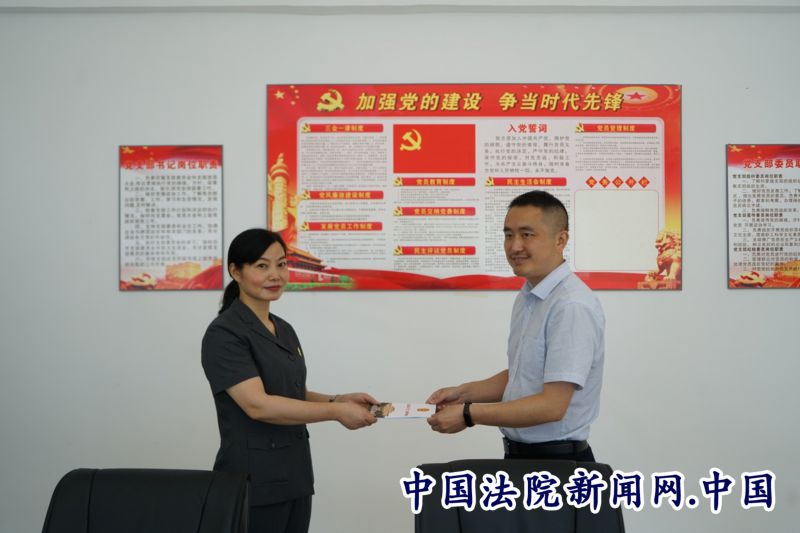 南溪法院法官向辖区四川南溪区正一集团钢结构有限公司送上《企业战“疫”法律手册》。