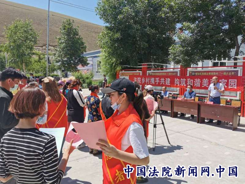 该“无讼乡村”示范点的创建是特克斯县人民法院开展诉源治理与多元解纷的成果,也是全县首个挂牌成立的“无讼乡村”示范点。该示范点特邀特克斯县、乡妇联、派出所、司法所、村委会调解员对达根别勒村出现的矛盾纠纷先行调解,调解成功的当场履行或进行司法确认,对于调解不成功的纠纷,再由当事人在示范点当场立案,符合条件的采取诉前调解。与此同时,特克斯县人民法院诉讼服务中心干警利用周末开展法律宣传进乡村活动,为达根别勒村群众发放300余份法律知识宣传单,实现法院乡村携手共建,打造和谐美丽家园。