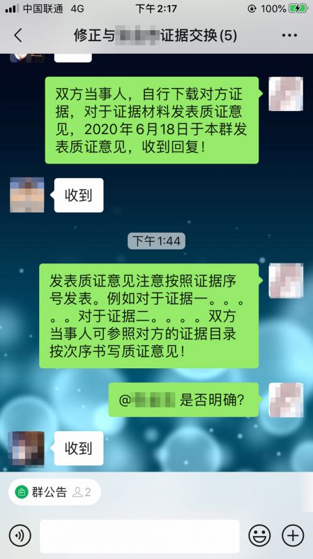 在开庭前,将双方当事人通过微信网络,建立微信质证群,做到告知双方当事人应知的权利义务后,组织双方当事人按次序进行质证,既做到了全程公开留痕,同时可以保证双方当事人对于证据充分的把握。在组织双方当事人进行网络质证后,办案法官通过网络云庭审与双方当事人核对账目,积极沟通,目的是更公平公正的解决矛盾。