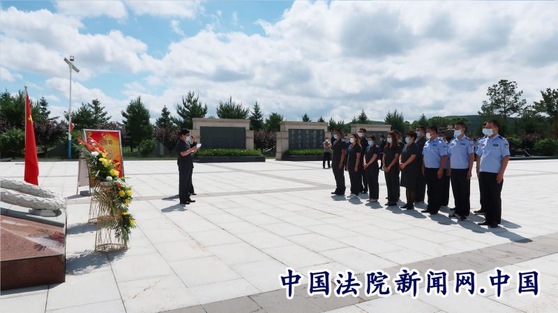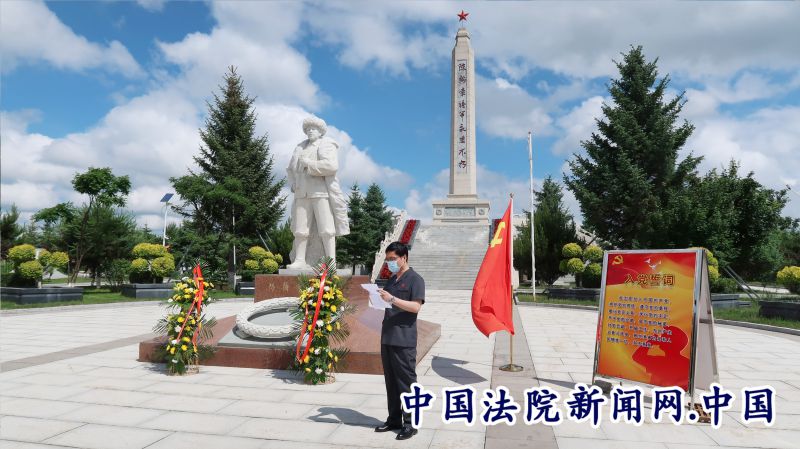 中国法院新闻讯(金薇)为庆祝建党99周年,激励党员干警不忘初心、牢记使命、忠诚履职,敦化林区基层法院组织开展了“七•一”主题党日活动,向“七•一”建党节献礼,重温党的光辉历史,引导干警坚定理想信念,坚守法治信仰。7月1日上午,敦化林区基层法院组织干警在院党总支专职副书记刘薇的带领下,前往陈翰章烈士陵园缅怀先烈,共同接受革命传统教育和爱国主义教育。
