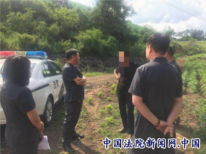 在当事人的带领下,法官实地察看了李某与董某相邻土地的状况,找双方当事人细致了解矛盾冲突之所在,并且寻找解决的办法,在田间地头努力为双方当事人进行调解。