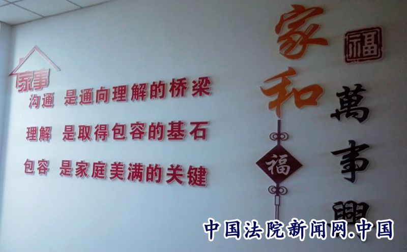 走进木垒县法院家事法庭,引入眼帘的“家和万事兴”几个大字格外醒目,悬挂的以“和”为主题的标语等设施布置的井井有条,桌签也由冷冰冰的原告、被告,变成了夫与妻、父与子等温馨的家庭成员称谓。同时,该院在家事法庭采用圆桌审判的形式,有着浓厚的“家”文化的温馨环境,有效的消除了当事人紧张的抵触心理,为成功化解家事矛盾无形中加了分。正是从当事人的角度出发将服务做得更精细,才更加彰显该院家事法庭的魅力。