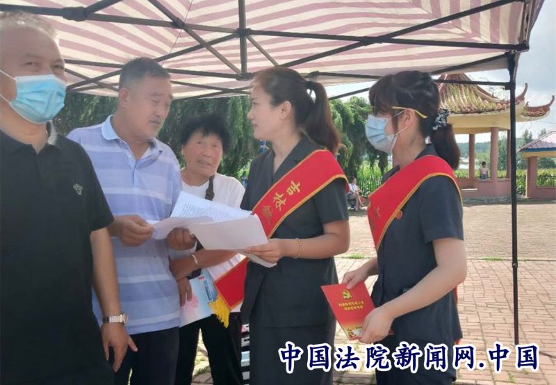 中国法院新闻讯(崔佳)暗藏深渊陷阱的“套路贷”,虚构华丽谎言的“非法集资”,您知道如何防范么? 为提高广大村民对金融风险的防范意识,维护金融市场的秩序稳定,8月5日,吉林铁路运输法院第三党支部6名党员一同来到丰满区新林村开展扫黑除恶法治宣传工作,为村民们带来一场暖心的普法行动。
