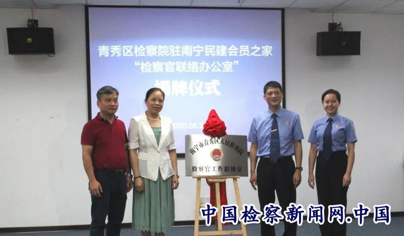 检察讯 为充分发挥检察职能,服务保障“六稳”“六保”,南宁市青秀区人民检察院与中国民主建国会南宁市委积极沟通,建立联系机制。8月20日,在南宁民建会员之家举行了检察官工作联络室揭牌仪式,青秀区人民检察院副检察长黄忠、覃颖及第三检察部干警参加本次活动。