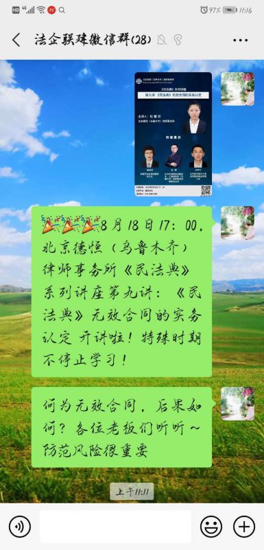 “明天《民法典》无效合同的认定开讲啦,特殊时期,不停止学习......”