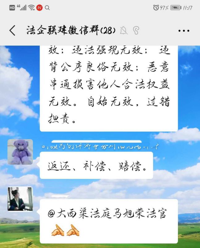 昌吉市法院大西渠法庭庭长马旭荣在法企联建群里发出这样一条条微信。此次突如其来的疫情,让辖区企业正常生产经营再次面临了“大考”,为更好的服务辖区企业经营发展,打造良好营商环境,大西渠法庭积极主动作为,以微信群为阵地,找准企业的法治需求点,通过在微信群内分享《民法典》要点解读,让《民法典》服务企业运营管理,更好地保障企业权益的同时,引导企业养成自觉守法的意识,形成遇事找法的习惯,培养解决问题靠法的意识和能力。疫情发生以来,大西渠法庭线上组织开展《民法典》交流学习3次,覆盖企业30余家。